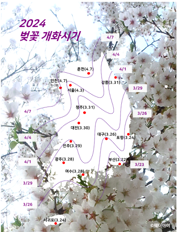 따라서, 벚꽃 구경을 계획할 때는 최근의 날씨 예보와 함께 해당 지역의 벚꽃 개화 상태를 꼭 확인하세요~